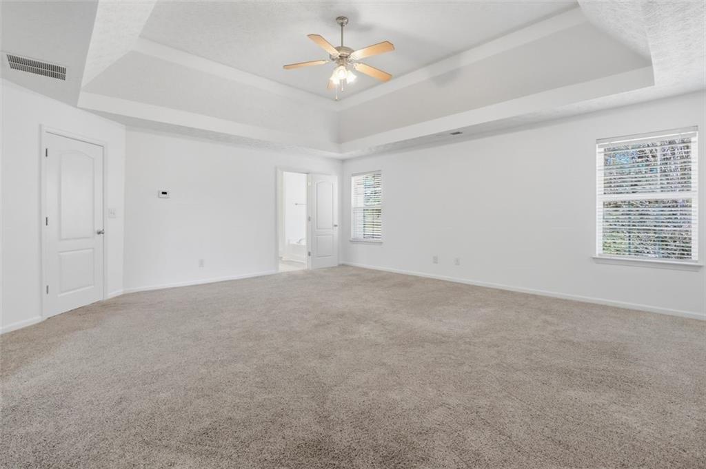 Step inside to a light-filled two-story foyer with fresh paint and an inviting sense of openness. As you step inside, just off the entry, a flexible formal living room can easily serve as a home office, while the elegant dining room provides the perfect setting for holiday gatherings and special occasions. At the heart of the home, the fireside family room showcases dramatic two-story ceilings and flows effortlessly into the thoughtfully designed kitchen, complete with butcher block countertops, stainless steel appliances and a spacious pantry. The main level also features a full guest suite with an adjacent bath, ideal for overnight guests, extended family, or added privacy. Outside, enjoy a private fenced leveled backyard and patio, offering a great space for entertaining, relaxing, or enjoying quiet evenings at home. Upstairs, a spacious loft overlooks the foyer and adds valuable flexible living space, perfect for a media area, playroom, study space, or second lounge. Two secondary bedrooms share a full bath, while the expansive primary suite serves as a true retreat with a sitting area, large walk-in closet, and a spa-like bath featuring dual vanities, a soaking tub, and a separate shower. Perfectly situated near Publix, Kroger, Home Depot, Walmart, the soon-to-open Kroger, Tanger Outlets, McDonough's South Point shopping center, I-75, GA-155 & GA-41. This home also offers convenient access to top-rated schools, dining, and everyday essentials. The perfect opportunity to own a home where lasting memories can be made.