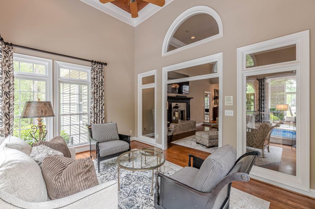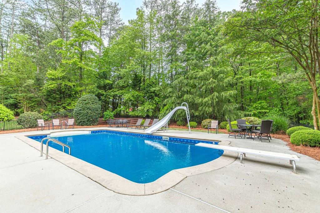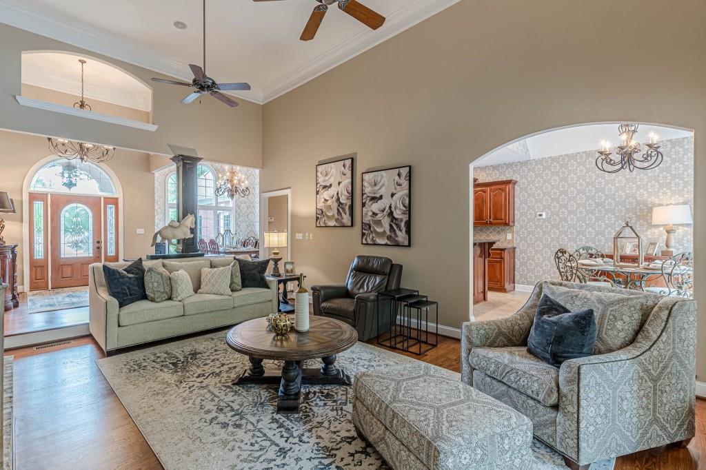 Designer showplace! Beautifully updated throughout 2 yrs ago and shows like a model home and features Private In-Law Suite & Sparkling Saltwater Pool! Step inside to gleaming hardwood floors, soaring ceilings, custom trim pkg and a sunken great room with fireplace, opens to lovely sunroom with tongue-and-groove ceiling overlooking your private saltwater pool oasis. The gourmet chef's kitchen is a culinary dream with stained cabinets, tile floors, a sunny breakfast room, and breakfast bar. Formal banquet-sized dining room with soaring 16-foot ceilings. The main-level Owner's Suite is a retreat of its own, featuring a romantic fireplace, his-and-her closets, and a spa-like ensuite bath complete with a large whirlpool tub, double vanities, and dressing area. Large Main level laundry and powder room. A wonderful in-law suite/apartment awaits on the terrace level, featuring its own private driveway and garage, a full kitchen with dining area, a large living space, two spacious bedrooms and bath, and opens to patio and pool. Workshop/storage area for your all hobbies or storage needs. Plus an unfinished bonus room upstairs ready for your personal touch! Enjoy this landscaped beauty with sparkling pool, seasonal views and your own mini putting green! - plus 20x20 fenced area perfect for pets. 3 HVAC systems for ultimate comfort. Don't miss this rare opportunity to own a luxury home with incredible custom features, spacious design, and room to grow without HOA restrictions! Schedule your private showing today!